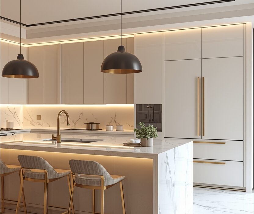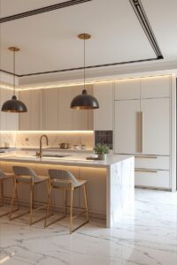 Home DecorLuxury Home Decor Modern Kitchen Design Ideas That Look Straight Out of a Dream Home Archimedes February 22, 2026February 22, 2026 This modern luxury kitchen combines marble surfaces, gold accents, and…